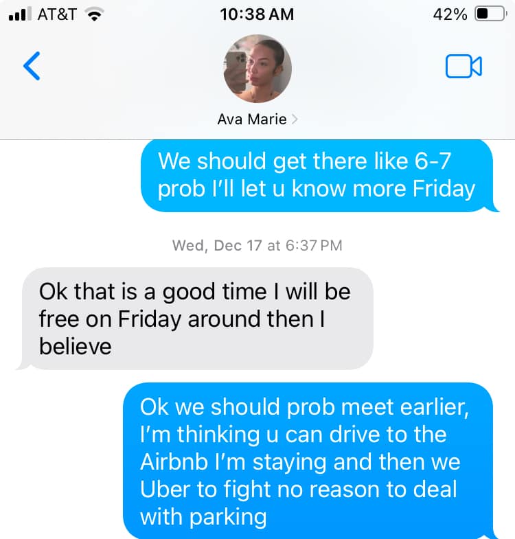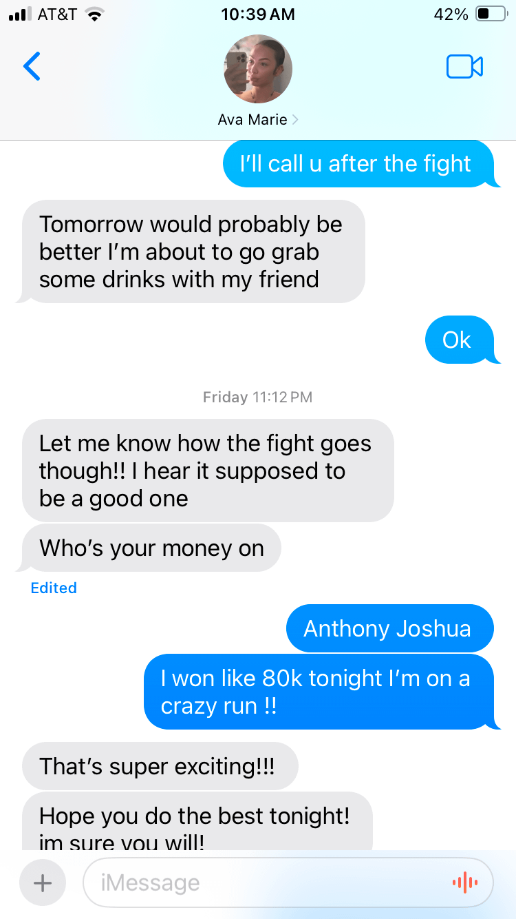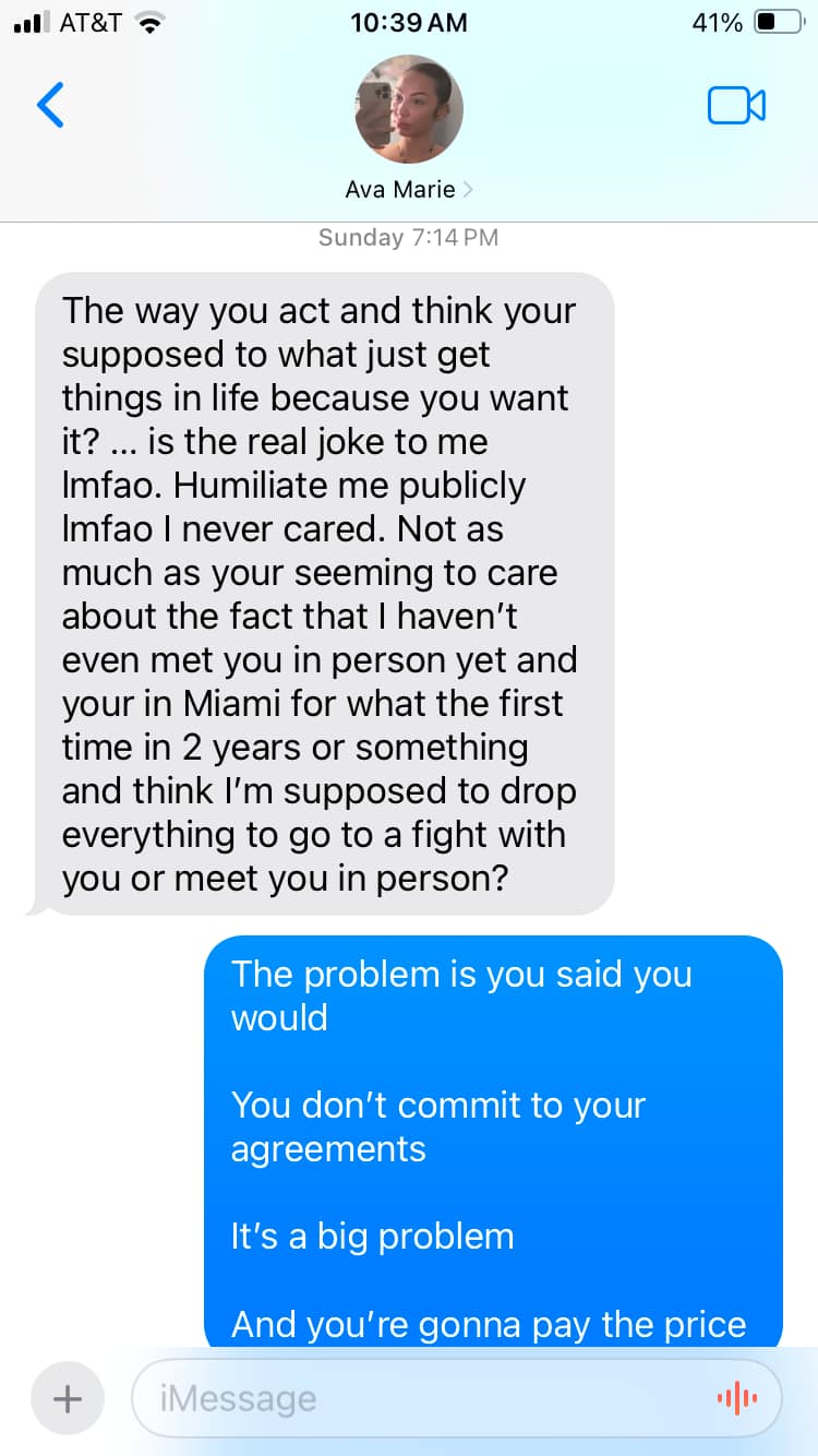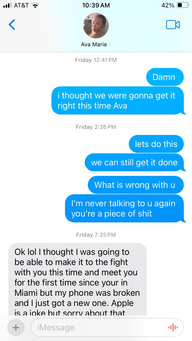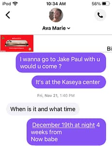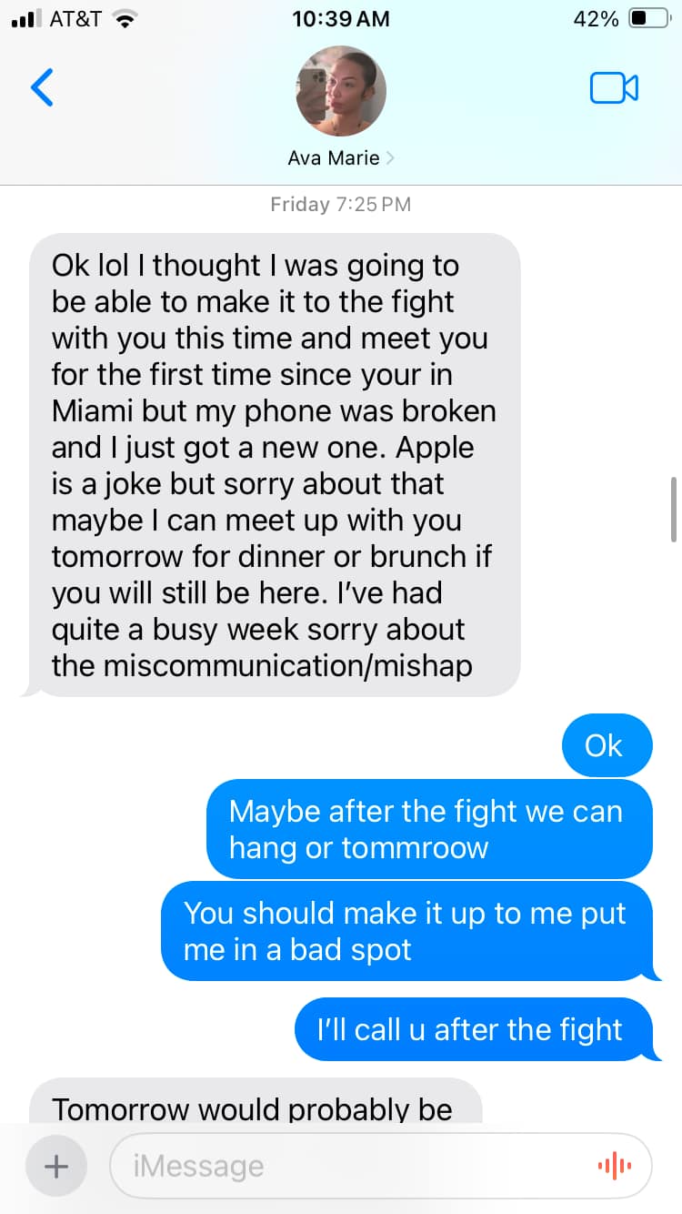 Ava was invited to go to Jake Paul vs Anthony Joshua which is a boxing match in Miami, Florida close to her hometown. She had agreed weeks prior to coming and even acted excited at the proposition as seen below: