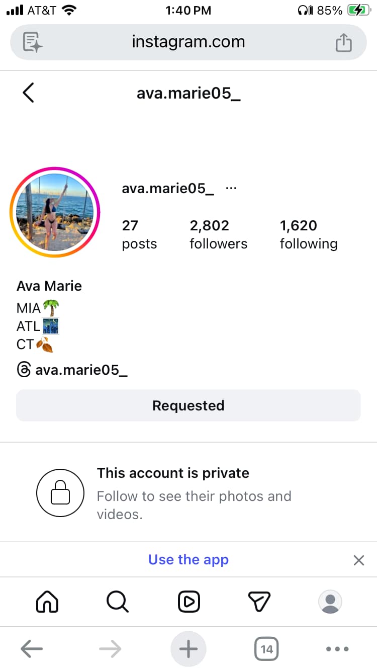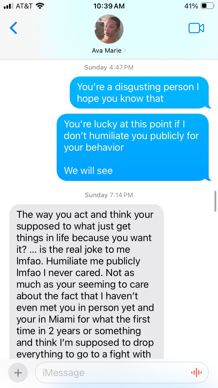 it appears Ava has changed her @ name on Instagram, probably as a desperate attempt to stop the spread of this article and her transgressions. Her new @ name is @ava.marie05_ and prior it was @ava.maria20